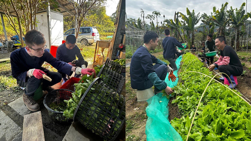 上午,學員分散在農地不同區域,進行維護與施肥工作。隨著每個人對環境逐漸熟悉,大家做起事來也更有次序與默契。